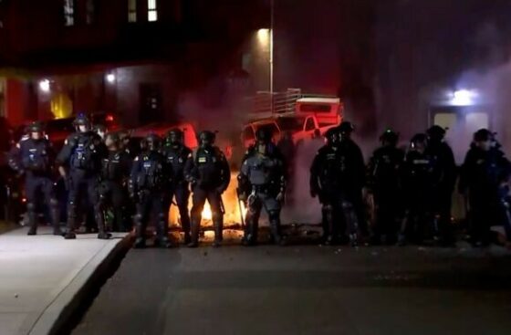 As multiple law enforcement agencies gathered to address the situation, masked individuals obstructed two streets near the building, blocked its entrances and exits, and set fires in two dumpsters, Balta wrote.