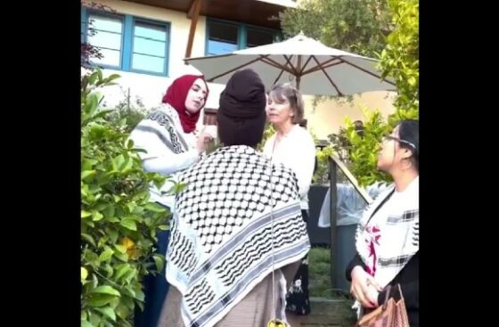 Chemerinsky, who is Jewish, and Fisk repeatedly asked Afaneh to leave, but she continued to speak, the video shows. At one point, Fisk tried to take the microphone from Afaneh while demanding she leave their property, the video shows.