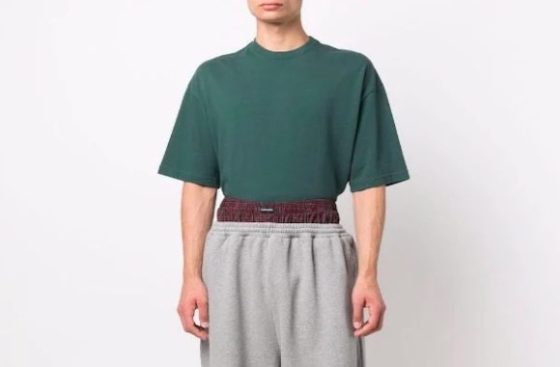 Balenciaga’s very pricey sweatpant/boxer combo — $1,190 retail — is just that: It features what look like boxers “peeking out from the [sweats’] waistband,” according to CNN Style. It’s a popular look, particularly among young black men.