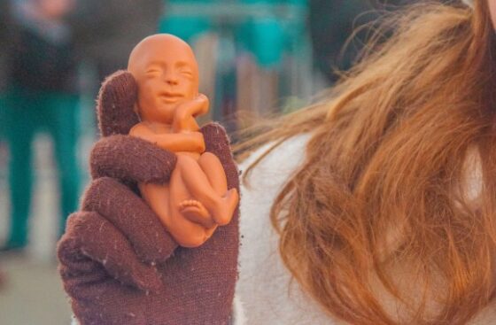 IMAGE CAPTION AND CREDIT: A hand holds a plastic fetal model; Maria Oswalt/Unsplash