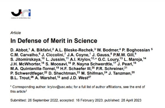 Editor’s note: A previous version of this article claimed the paper “In Defense of Merit in Science” has 27 co-authors. The correct total is 29.