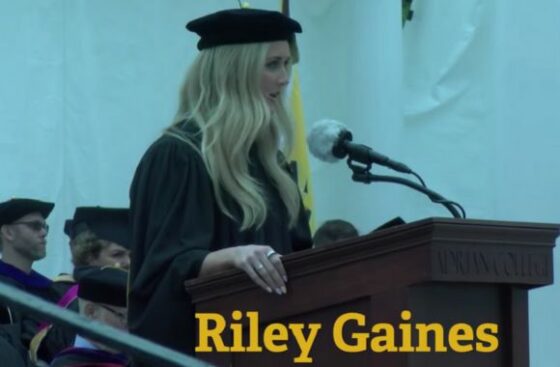 Female sports activist Riley Gaines urged Adrian College graduates to be courageous during a speech over the weekend.