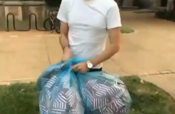WOW: A student senator at @WUSTL was caught on video throwing away 2,977 American flags from conservative students’ 9/11: Never Forget Project memorial.