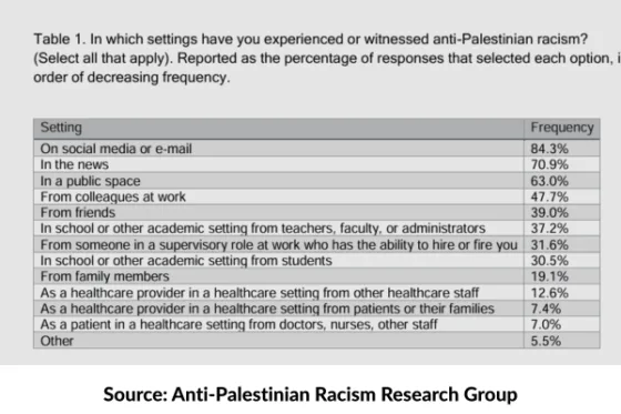 “Our study results are not based on a representative sample, but a convenience sample,” Ghannam said. The survey is “an initial snapshot of [anti-Palestinian racism] in the healthcare setting.