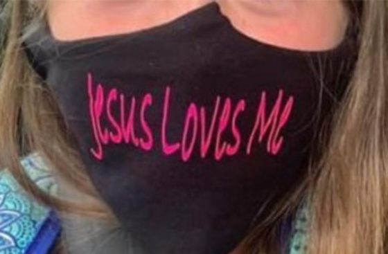 Because Lydia fears she’ll once again violate the “Religious Speech Policy” and thus be “subjected to punishment, including detention and possible suspension,” the girl is abstaining from wearing her “Jesus Loves Me” mask – a severe violation of her constitutional rights.
