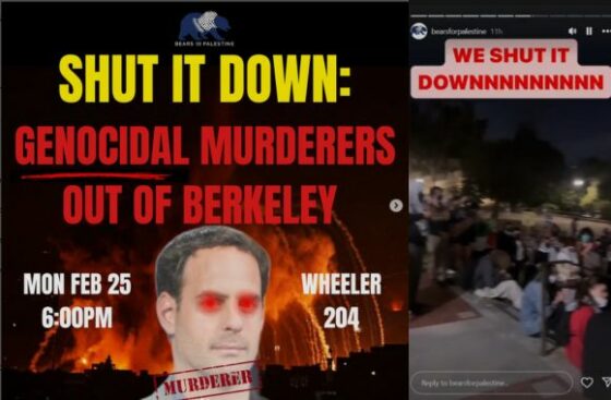 “Shut it down: Genocidal murderers out of Berkeley,” the group wrote on its Instagram.