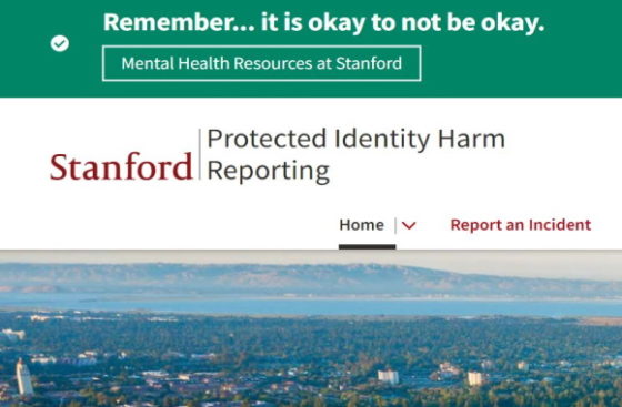 Students can anonymously report “microaggressions to macroaggressions” that occur either on campus, off campus, or online, according to an October 2022 Stanford news report.
