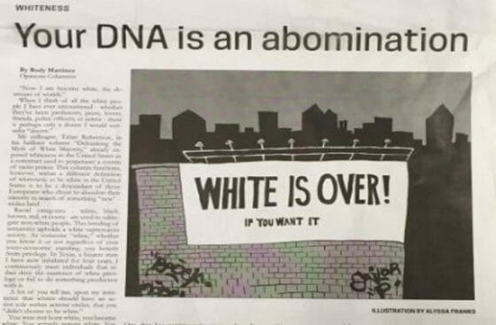 “Ontologically speaking, white death will mean liberation for all … accept this death as the first step toward defining yourself as something other than the oppressor,” Martinez wrote in his column. “Until then, remember this: I hate you because you shouldn’t exist. You are both the dominant apparatus on the planet and the void in which all other cultures, upon meeting you, die.”