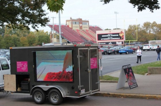 In response, Otterbein students have staged counter protests, knocking down signs, standing in front of the organization’s “Truth Truck” and JumboTV and initiating a “bedsheet brigade” to cover up displays.