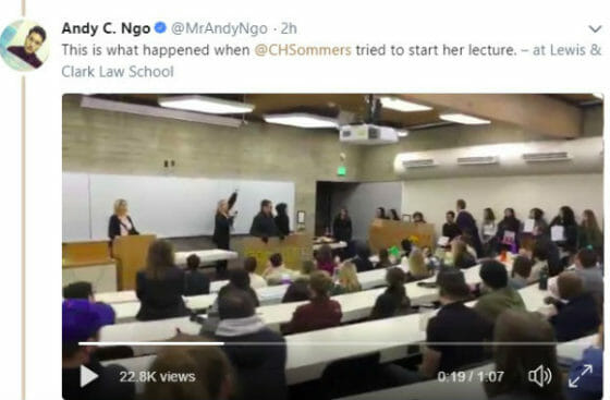 This is what happened when @CHSommers tried to start her lecture. pic.twitter.com/WJrQGAnmkA