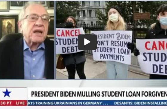 Alan Dershowitz, a law professor at Harvard University, said recently that President Joe Biden’s rumored student loan bailout is illegal.