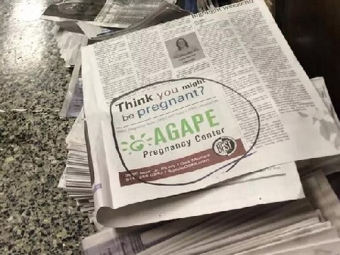The advertisement for Agape Pregnancy Center has run in The Times-Delphic for a while now, but Planned Parenthood has also runs ads in the paper before, Courtney Fishman, editor-in-chief of the newspaper, said in an email to The College Fix.