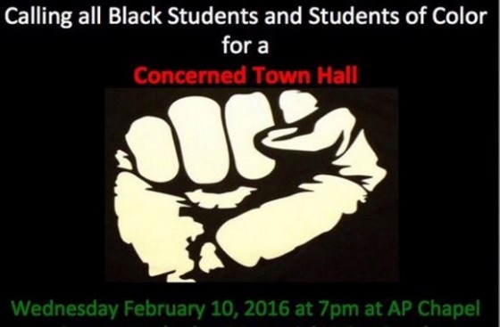 The gathering was organized by Concerned Student 1950, which led protests on campus last fall accusing the institution of racism; it describes itself as seeking the “liberation of all BLACK collegiate students” on Twitter.