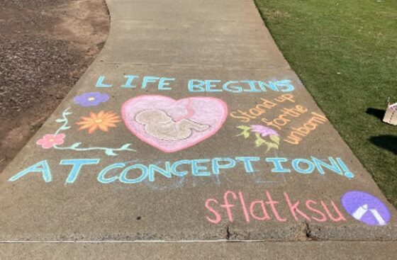 Campus sidewalks across the country were covered with pro-life messages like “Human life has value” and “Choose life” on Tuesday, all projects of students who advocate for unborn babies’ right to life.