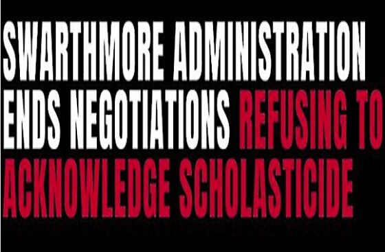 Swarthmore College has done nothing but proven themself to be an inhuman institution that would rather take away housing and wages than to allow for students to fight against a genocide that its $3 billion endowment is invested in. The school would rather invest in genocide and align itself with a settler-colonial regime than care about the safety of their own students. It is scary how quickly this “Quaker institution” has utilized the same suppression tactics they denounce in classes.