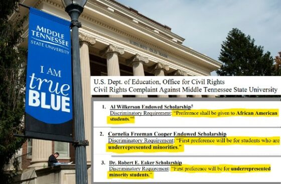 Middle Tennessee State University is facing a federal civil rights complaint alleging it offers 17 scholarships that “discriminate based on race, color, and/or national origin.”