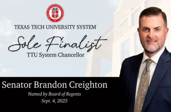 - Texas state Sen. Brandon Creighton has been selected as the sole finalist for chancellor of the Texas Tech University System.