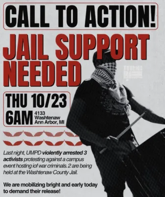 John accused UM of having a double standard: “Student groups like SSI can invite IOF soldiers who have committed war crimes in a genocide against Palestinians without any sort of repercussions; meanwhile, campus community members and people of conscience in general are being arrested and brutalized by DPSS, by UMPD, for protesting a genocide.”