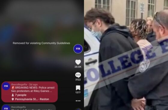Video sharing platform TikTok removed a popular College Fix video that showed two leftists being detained by police after they flipped a table prior to an event with Riley Gaines.