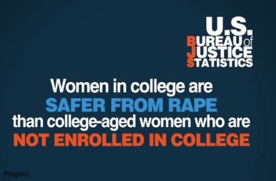 “… Based on their responses, the authors, not the participants, determined that 1,000 had been victims of some type of ‘non-consensual or unwanted sexual contact.’ And voila! From one vaguely worded, unscientific survey we suddenly arrive at ‘a rape culture on college campuses.’ Tellingly, the study authors have since explicitly stated that it is ‘inappropriate’ to use their survey to make that claim,” the PragerU video states.