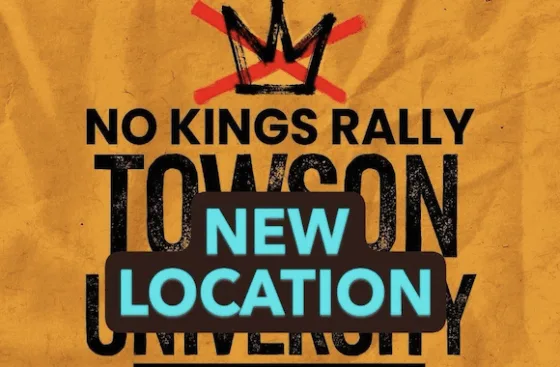 The so-called “No Kings” protest scheduled for today at Towson University was moved after a school official informed students involved that speakers “would be run through federal government databases and vetted for security reasons.”