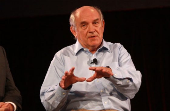 The photograph in question shows Charles Murray standing on a stage and looking to his left with a mildly concerned expression on his face.