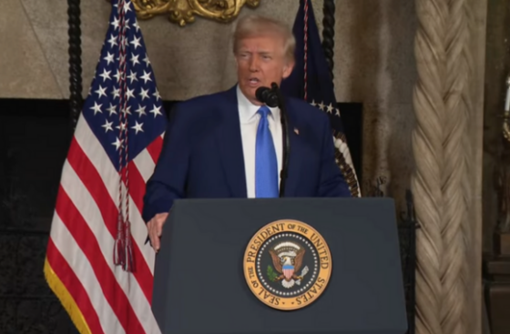 IMAGE CAPTION AND CREDIT: President Donald Trump speaks at a press conference from Mar-a-Lago. White House/YouTube