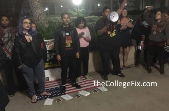 Outside the event, protestors took their anger out on an American flag, stepping on it and calling for a total communist revolution.