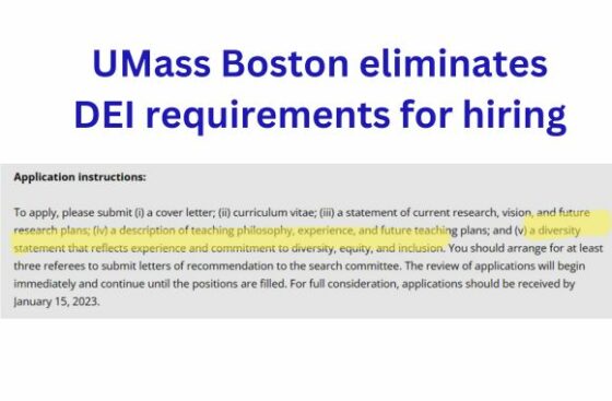 The University of Massachusetts Boston will no longer require aspiring faculty members to submit “diversity, equity, and inclusion” statements following advocacy from a national free speech group.
