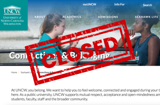 “Based on policy requirements and consistent with System Office guidance, UNCW will close the Office of Institutional Diversity and Inclusion (OIDI), eliminate the Chief Diversity Officer position and shift the cultural and identity centers from OIDI to Student Affairs,” Chancellor Aswani K. Volety wrote in a message to the school.