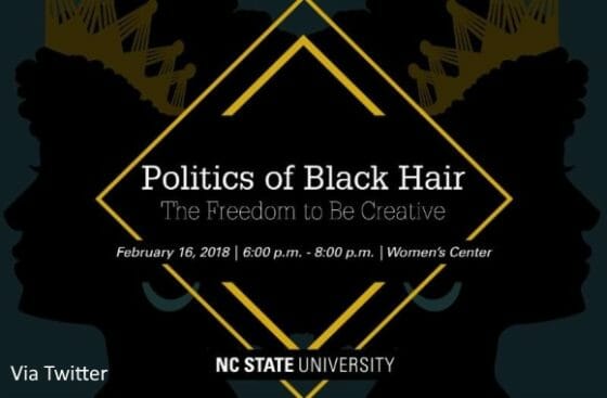 According to a university webpage, the art exhibit includes photos of North Carolina State community members and aims to “reclaim” black hair.