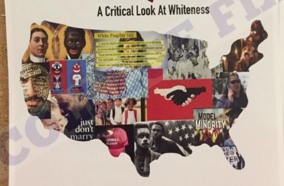Walking into the room, a large digital overhead screen read “The Annual Whiteness Forum,” and at each station students stood by their projects to talk about their whiteness studies.