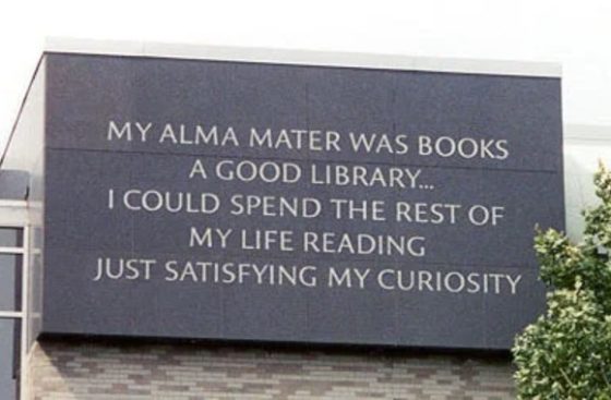 “My alma mater was books, a good library … I could spend the rest of my life reading, just satisfying my curiosity,” the inscription read, taken from “The Autobiography of Malcolm X.”