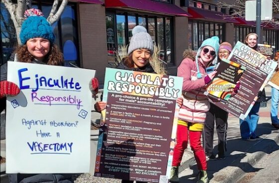 A campaign poster apparently sums it up: “Women’s ovulation is involuntary. Men’s ejaculation is voluntary.”