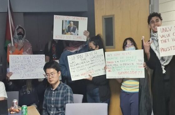 An Israeli physics professor’s lecture at the University of Nevada Las Vegas was interrupted by anti-Israel protesters late last month, but campus cops refused to remove them — citing the First Amendment.