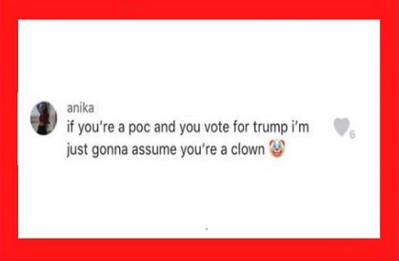 Another student called “all ‘trumpets’ and especially POC trumpets a bunch of clowns and hypocrites.” One student was called “racist, transphobic, sexist, and a rape ableist” for supporting President Donald Trump.