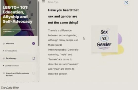 The training repeats other regular LGBT talking points, including that “gender” and “sex” are different and that “gender is a spectrum.”