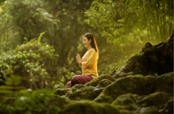 IMAGE CAPTION AND CREDIT: A woman meditates in nature; Shu Lei/Pexels