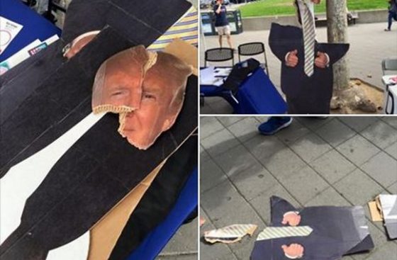 “One asked how he could sign up, clearly not being serious, just as his four accomplices rushed the Donald Trump cutout, tore it to pieces, and yelled ‘f*ck Donald Trump.’ They of course then ran off like a bunch of cowards.”
