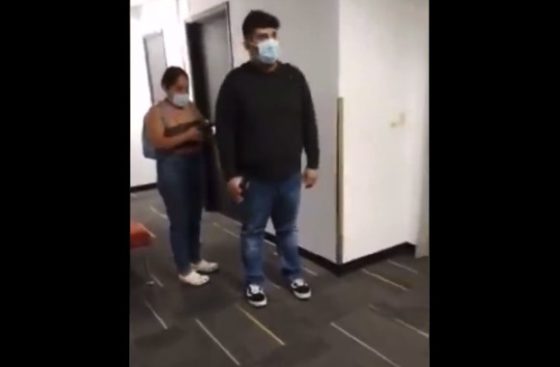 The activists then follow her back to the classroom, chanting about the Build Back Better plan and amnesty for illegal immigrants.
