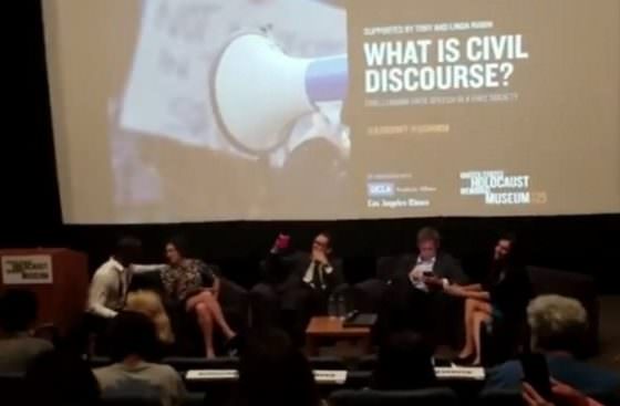 The incident on Tuesday came at a panel discussion titled “What Is Civil Discourse? Challenging Hate Speech in a Free Society.” The event, held in a UCLA auditorium, was hosted by the university, the Los Angeles Times and the U.S. Holocaust Memorial Museum.