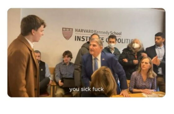 The hostile takeover of the room occurred at the Harvard Kennedy School Institute of Politics. Manchin was reportedly speaking on his decision not to seek reelection in a discussion at which his adult daughter, a business executive, was also present and said “doesn’t anybody monitor the doors here” after the protesters barged in, the Harvard Crimson reported.
