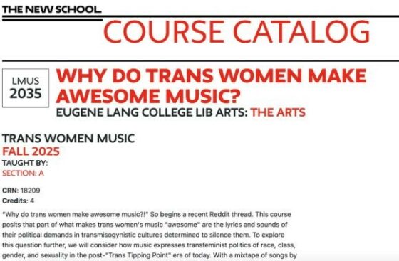 Taking inspiration from a “recent Reddit thread,” The New School is offering a course in fall 2025 to explore the question “Why Do Trans Women Make Awesome Music?”