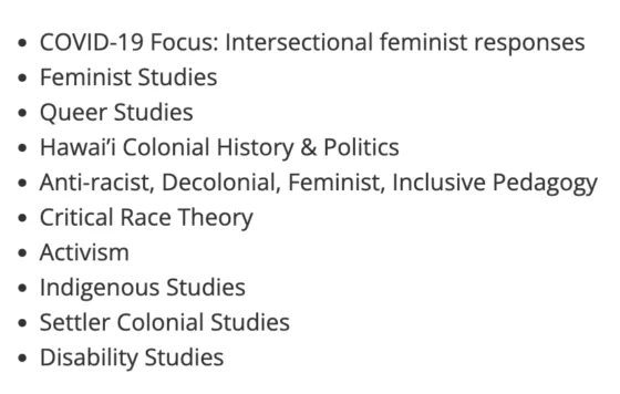 According to her faculty page, Rohrer “worked for progressive nonprofits” in Hawaii and San Francisco and was “a scholar-in-residence” at UC Berkeley’s Department of Gender & Women’s Studies. Her areas of expertise include: