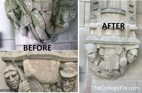 When this new carving was installed, who designed it, and the status of the old, controversial carving remains unclear. A Yale spokesperson said they would provide The College Fix with more details soon.