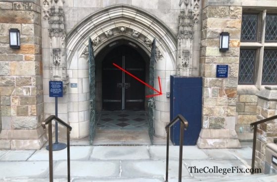 Two years later, the stone carving remains covered up at the entrance to Sterling Memorial Library, and an on-campus request this week by a College Fix reporter to view it was denied.